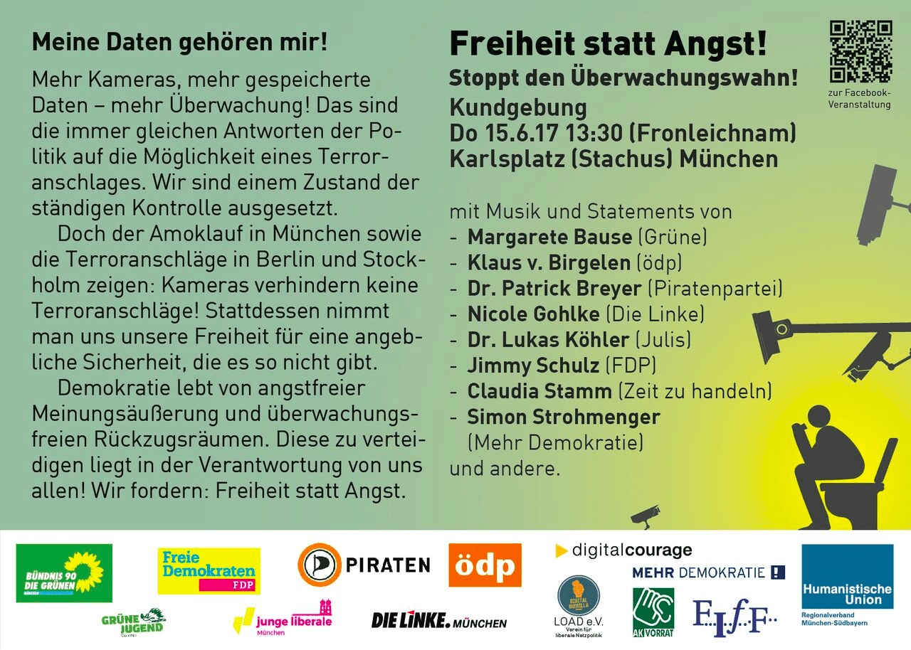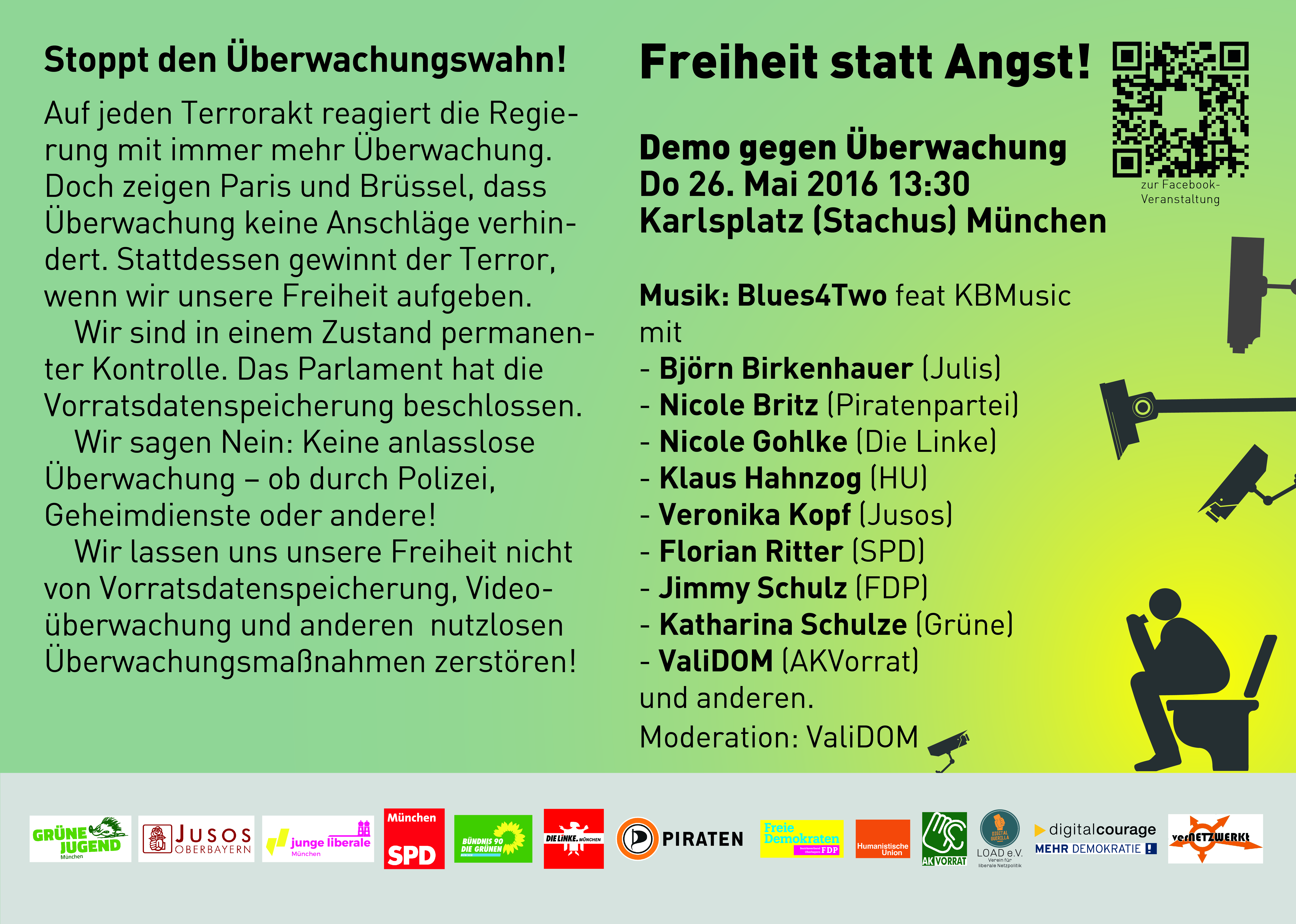 26.5. Demotermin 2016 Freiheit statt Angst 13:30 Stachus München